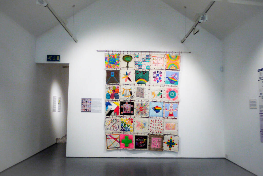 From February to March, we held an exhibition in the West Gallery at Quay Arts. This was the culmination of our Pride in Self, Pride in Place project. A number of poignant displays were on show. The LGBT+ Trail Map, designed by Spike Spondike, illustrated LGBTQ+ historical figures associated with the Isle of Wight. The LGBTQ+ memorial quilt, curated by Dawn Fidler and Jenna Sabine, portrayed moving insights into LGBTQ+ stories on the Isle of Wight. A classroom installation represented school at the time of Section 28.